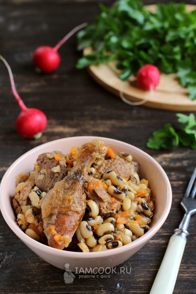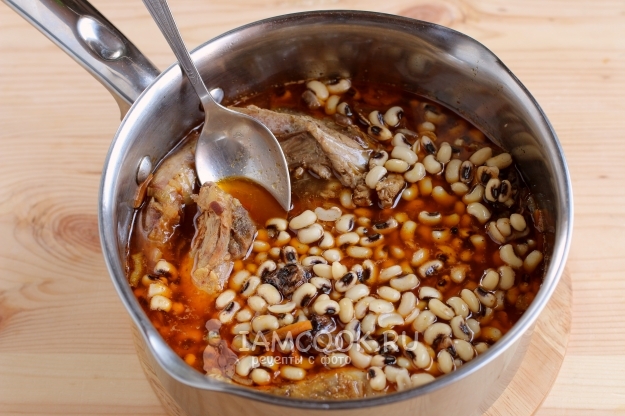 Чтобы блюдо приготовить быстрее и не заморачиваться с замачиванием фасоли, ее предварительной варкой, нужно взять фасоль сорта черный глаз. Такая фасоль готовится намного быстрее, чем фасоль других сортов, не требует замачивания, сохраняет свой внешний вид, имеет нежный сливочный вкус. Также для блюда можно использовать специи и приправы, которые придадут блюду яркий вкус, мне нравятся хмели-сунели и карри.