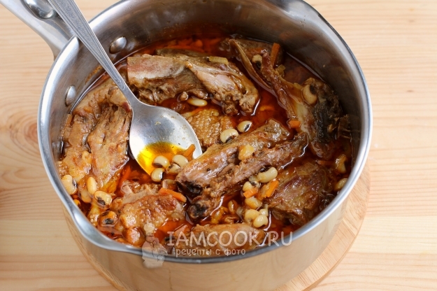 Через час утка будет готова, мясо станет мягким и будет отставать от кости. Фасоль также будет готова.