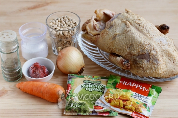Итак, для приготовления тушеной утки с фасолью возьмем все необходимое.