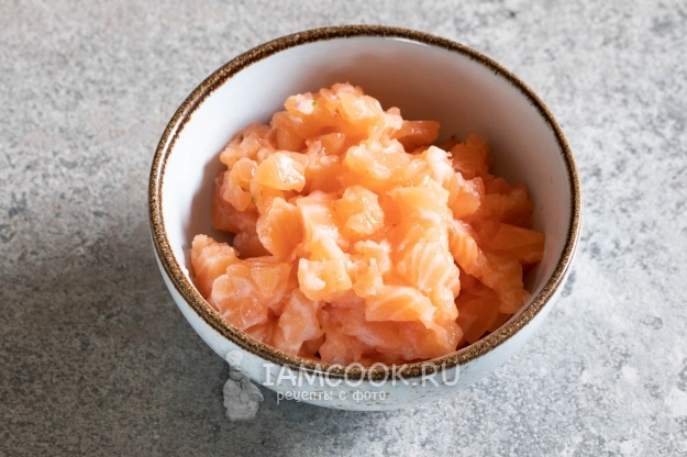 Тартар из лосося - один из моих любимых способов навернуть сырой рыбки, аккурат на втором месте после сашими. Самое важное, что для него нужно - филе лосося безукоризненного качества от проверенного производителя. Конечно же, из глубокой заморозки (чтобы не париться по поводу паразитов) - но сейчас, я подозреваю, уже вся рыба, которую я вижу в продаже, прошла эту обработку. После оттайки (щадящей, в холодильнике) лосось ни в коем случае не должен разваливаться и издавать какой бы то ни было неприятный запах. Собственно, он вообще не должен пахнуть рыбой. Мясо должно быть мягким, но не рыхлым.