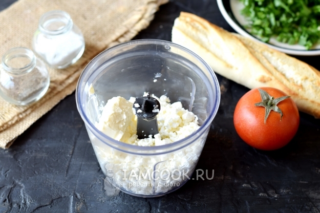В чашу блендера уложите творог, добавьте к нему мягкое сливочное масло.