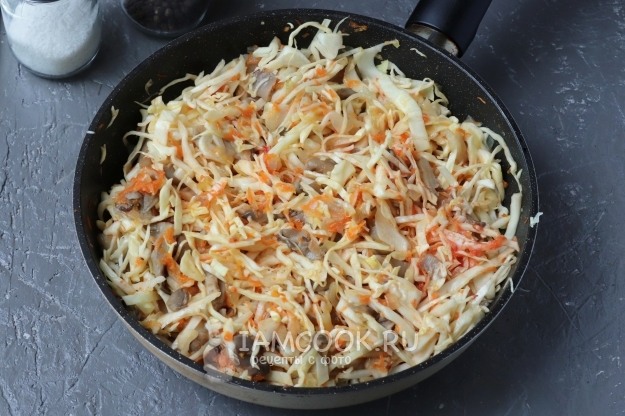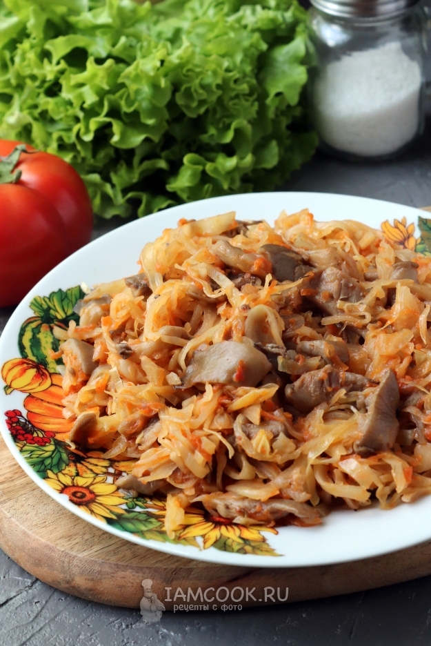 Вот и всё, замечательная тушеная капуста с вешенками готова. Вкусно как в горячем, так и холодном виде.