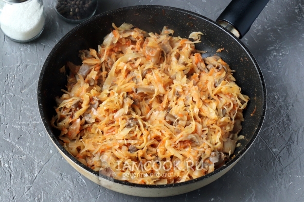 По истечению времени капуста и все составляющие данного блюда должны полностью приготовиться и стать мягкими. Чтобы во время приготовления ничего не подгорело, стоит периодически помешивать, проверяя тем самым наличие жидкости. Если капуста ещё жёсткая, а влаги мало - добавьте немного воды из чайника или просто фильтрованной и продолжайте тушить до готовности.