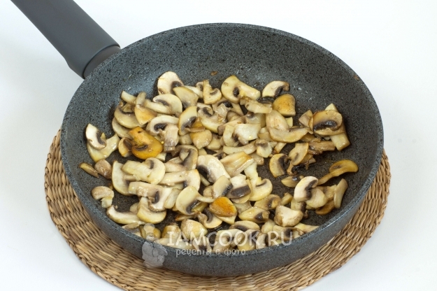 Грибочки в данном случае я немного обжарила, чтобы их вкус был более ярким, но можно класть и не обжаренные.