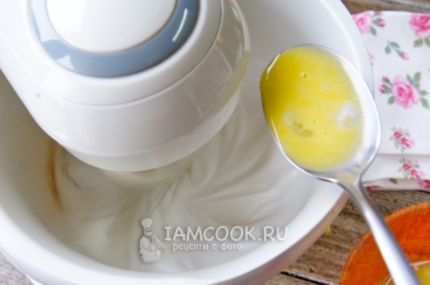 Отдельно взбейте белки в пышную пену, лучше всего использовать миксер, он ускорит процесс.