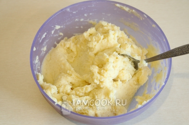 Отваренный картофель разминаем толкушкой. Добавляем сливочное масло, черный молотый перец и кориандр по вкусу. Перемешиваем до однородности.