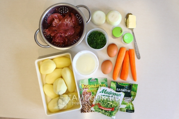 Для приготовления запеканки из картофельного пюре в мультиварке, помимо картофеля, беру куриную печень, а также лук и морковку - для начинки. Пряный и сочный печеночный паштет отлично сочетается со сливочным картофельным пюре. А вместе они создают нежную гармонию в запеканке. Такое блюдо отлично подойдет для ужина или обеда. Подавать его вкуснее всего в горячем виде со сметаной. Скорее приступим к приготовлению!