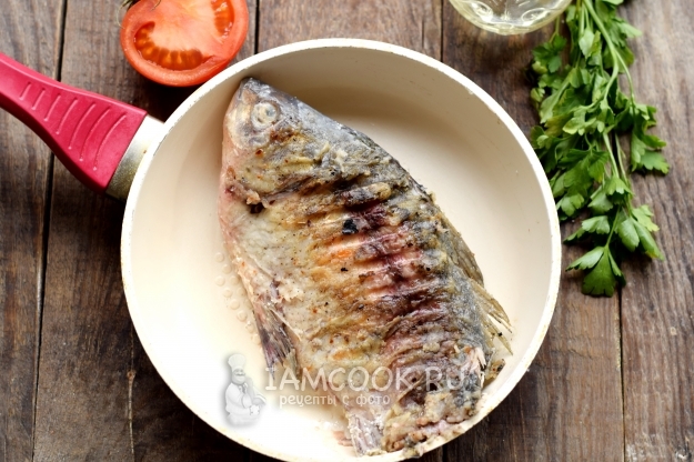 Карася обжарьте на сковороде или гриле, установив высокий нагрев. Жарьте рыбу буквально по минуте с каждой стороны, не более.