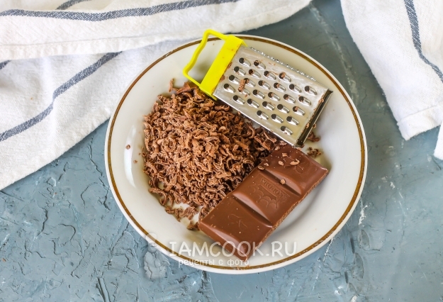 Натрите шоколад выбранного вами сорта на терке с мелкими ячейками.