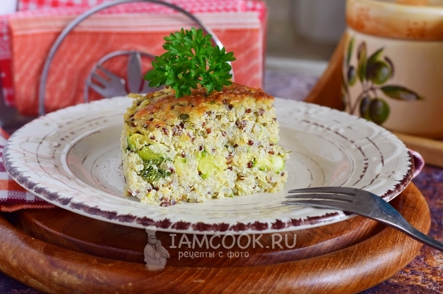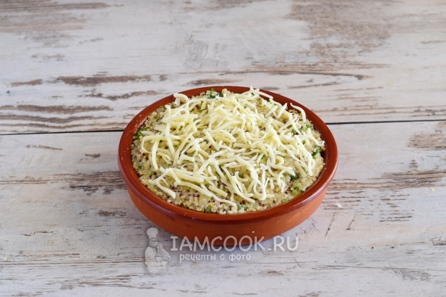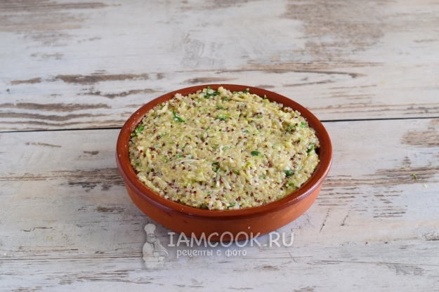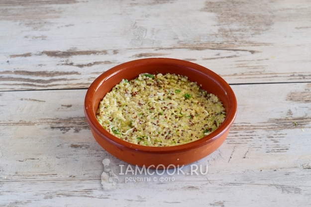 Сверху выкладываем оставшуюся часть массы с киноа. Отправляем форму в разогретую до 180 градусов духовку на 35-40 минут.