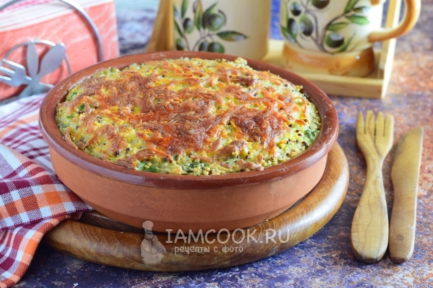 Затем достаем запеканку, посыпаем верх оставшимся сыром и возвращаем ее в духовку еще на 10 минут, чтобы расплавился сыр. Можно для этого включить в духовке режим " Гриль".