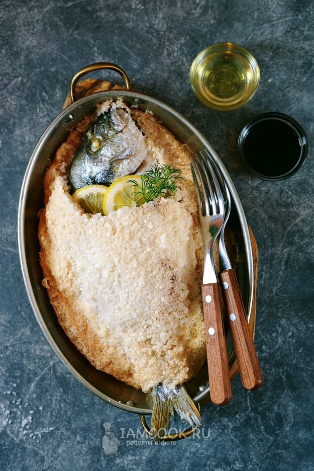 Сегодня хочу показать вам очень интересный рецепт приготовления рыбы - в соляной корке. Готовится такое блюдо очень просто и быстро, а выглядит сногсшибательно. Приготовить таким образом можно абсолютно любой вид рыбы, главное, с малым количеством костей. Запеченной в соли дорадо можно запросто удивить гостей, и не только внешним видом... Рыба получается настолько нежной и вкусной, что от нее просто невозможно оторваться, при этом вкуса соли не будет совсем. В общем, смело готовьте, такое блюдо не может не понравиться.