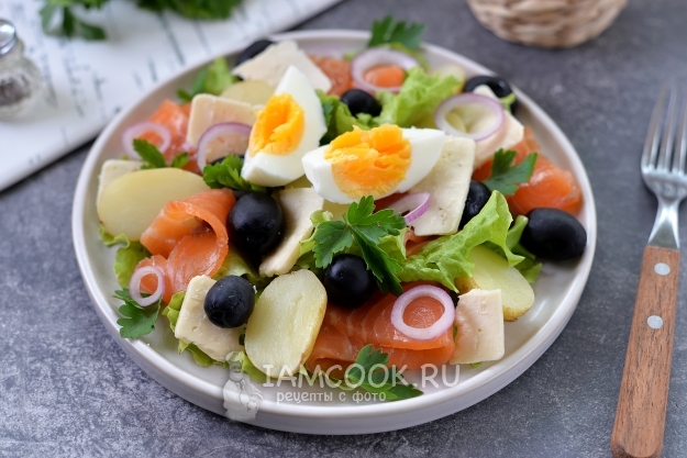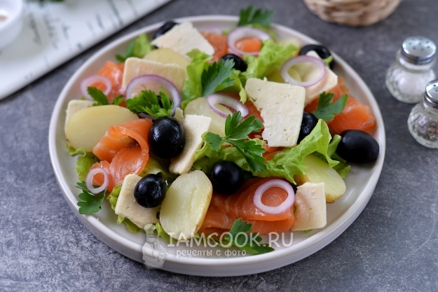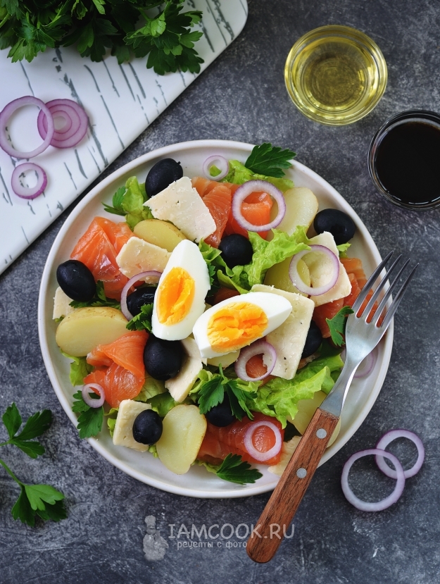 Салат с соленым лососем и молодым картофелем подавайте сразу же после приготовления.