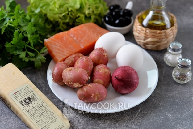 Салат с соленым лососем и молодым картофелем легко и достаточно быстро готовится, он вкусный и сытный. Такой салат можно приготовить семье на обед, а можно и смело на праздничный стол поставить, гости всегда едят его с удовольствием. Заправляется салат оливковым маслом хорошего качества, можно также добавить немного лимонного сока, он хорошо сочетается с другими ингредиентами. Лук можно взять красный, белый или молодой зеленый - с любым видом одинаково вкусно. Если в холодильнике найдется кусок соленой красной рыбы, то обязательно попробуйте приготовить такой салат, его точно оценят любители рыбки.