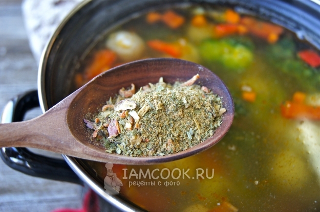 Добавим универсальную приправу, соль, перец и проварим минут 10.