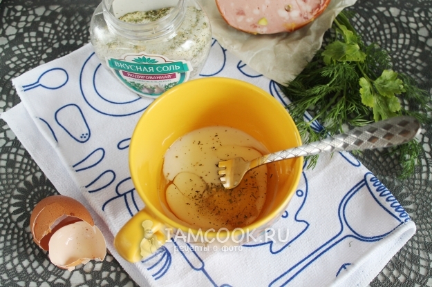 Посолите ароматной солью и хорошо взбейте смесь вилкой.