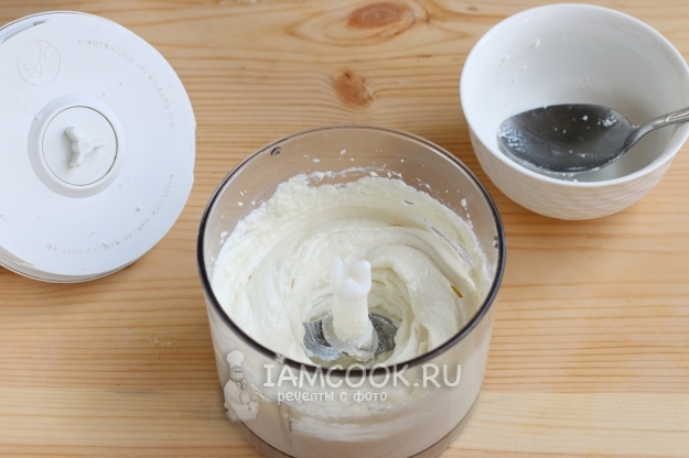 Добавляем в эту массу взбитый творог и снова взбиваем около минуты.