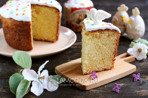 А вот так выглядит кулич в разрезе. Он очень нежный и ароматный.