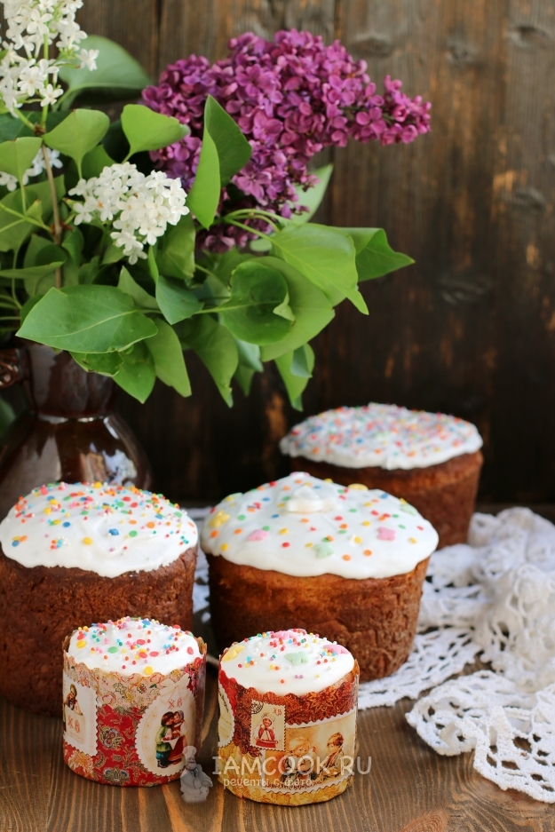 В этом году я пекла куличи по новому рецепту, в тесто для которых добавляется творог. Интересно было попробовать этот новый вариант, зато теперь моя записная книжка пополнилась еще одним хорошим рецептом пасхальных куличей.