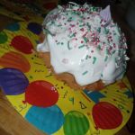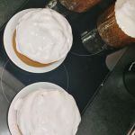 Как только в сиропе не будет крупинок сахара, снимем кастрюльку с огня, немного остудим и добавим растворенный желатин. Сразу начнем взбивать массу миксером до побеления и пышности. Когда взбитая глазурь станет густой, сразу же наносим ее горячей на шапочки куличей, потому что она очень быстро застывает, а ее еще нужно успеть украсить посыпками.