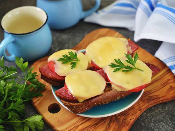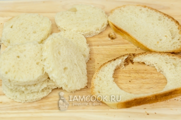 Стаканом или формой вырежьте из хлеба кружочки. Разделите их пополам.