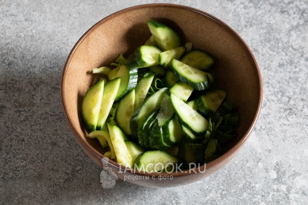 Салат с пак чой - новый для меня способ применения этого овоща, раньше я его (или её? какого рода пак чой?) всячески варила, жарила и припускала, но вот, наконец-то, созрела попробовать данный продукт в сыром виде. Вы уже пробовали? Я - ни разу. Оторвала для начала листочек, помыла, откусила - по моим представлениям, пак чой, на самом деле, больше похожа по вкусу на салат, чем на капусту. Ну, может, есть ещё самая капелька этакой редисочности, но не горькой, а сладкой. Наверняка в Азии есть свои традиционные рецепты с этим ингредиентом, но я решила приготовить салат с пак чой, не заглядывая ни в какие национальные кухни, просто по своему разумению. Мне показалось, что к нему лучше всего подойдут всякие хрустящие овощи: огурец, морковь, сладкий болгарский перец. Ну, и чуть-чуть жгучего перца для остроты.