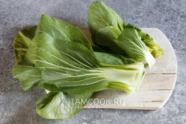 Самое первое - разделяем кочешки пак чой на отдельные листья и очень хорошо их моем. Мыть кочешками - напрасная трата усилий, не промываются они. Мелкие внутренние листья у меня пойдут в оформление салата, крупные наружные будут непосредственно нарезаны. У всех листиков нужно отрезать жёсткие основания, из которых торчат волокна (и которые, к тому же грязные и плохо отмываются).