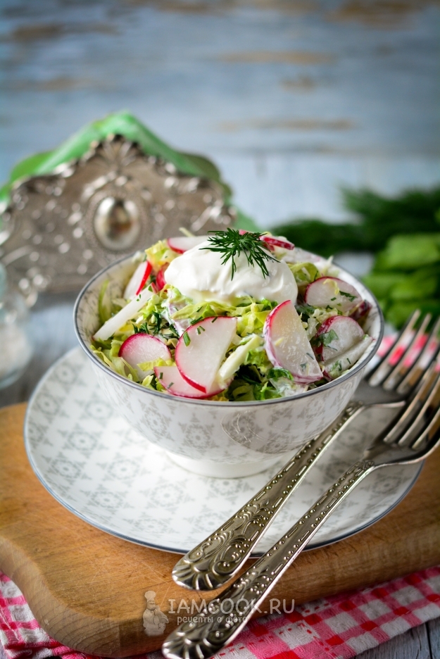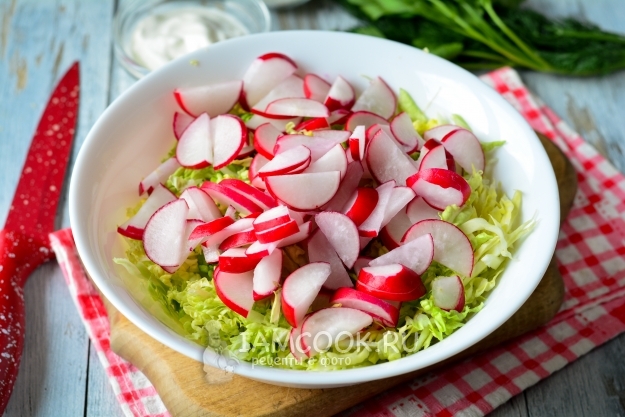 Вкусный и полезный салат из пекинской капусты и редиски готов. Сразу подать его к столу. Приятного вам аппетита!