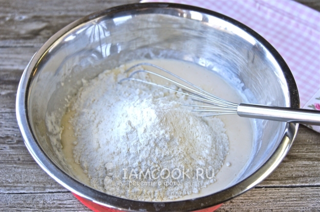 Всыпала муку, разрыхлитель, соль и тщательно перемешала.