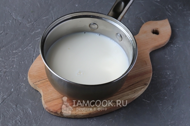 В подходящую кастрюлю налить молоко и отправить на огонь.