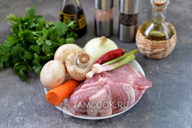 Подготовьте продукты по списку. Лук и морковь почистите, помойте вместе с мясом и другими ингредиентами под проточной водой, обсушите бумажными полотенцами.