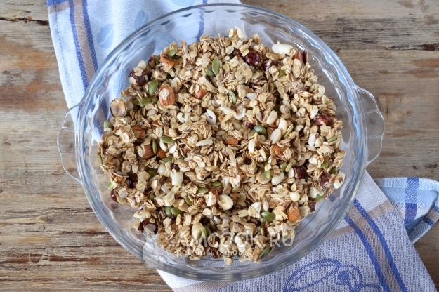Чем более тонким слоем выложена гранола, тем быстрее она запечется в духовке.