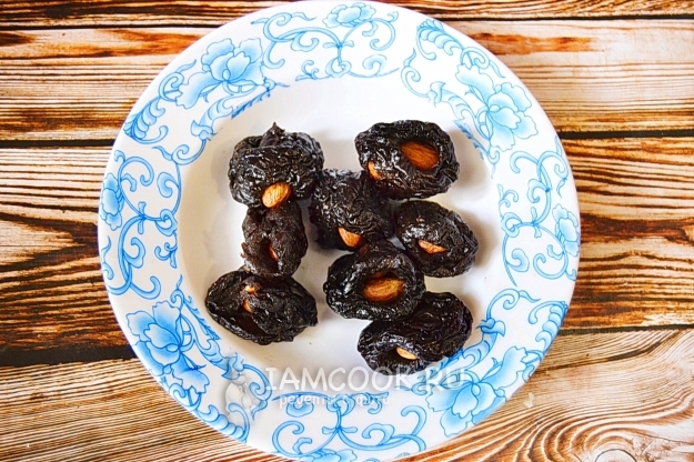 В чернослив заложу цельные миндальные орешки. В некоторые особенно крупные плоды у меня вошло и по два ореха.