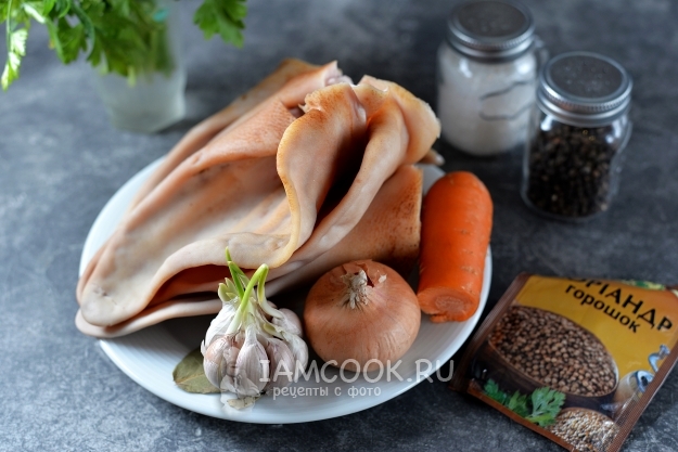 Подготовьте продукты по списку. Уши помойте под проточной водой, зачистите зубчатым ножом, отрежьте жирную часть.