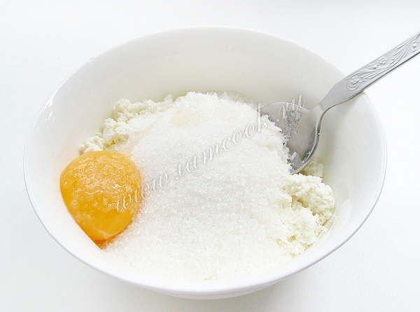 Сначала нужно приготовить творожные шарики. Для этого необходим творог без крупинок. Протрите его через сито, смешайте с желтком, сахаром и кокосовой стружкой. Добавьте краситель ( по желанию) на кончике ножа. Хорошо размешайте, чтобы из массы можно было скатать шарики.