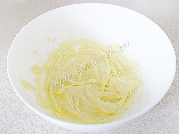Масло также необходимо взбить с частью сахара. Я брала сахарную пудру, она нежнее.