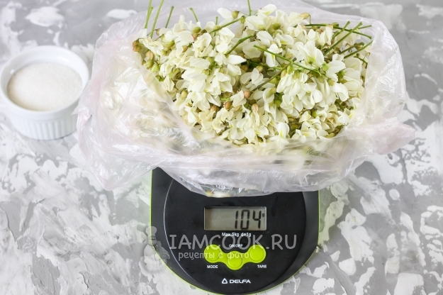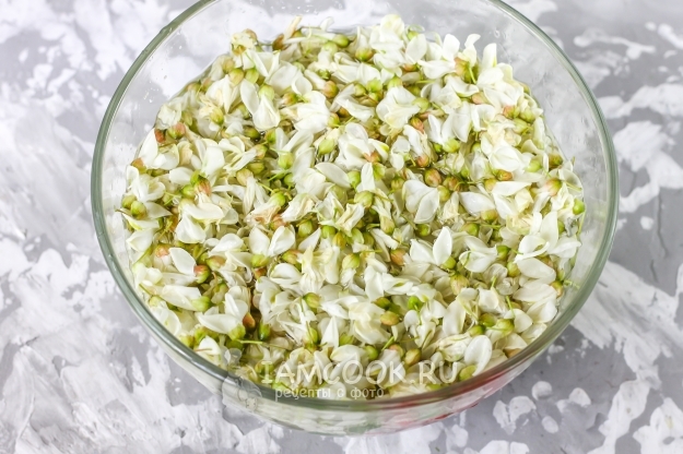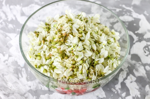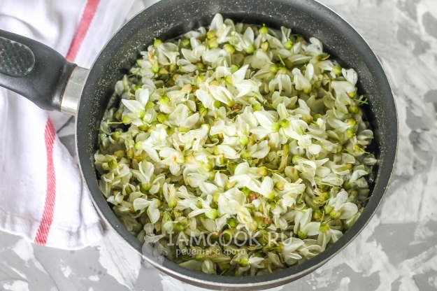 Соберите цветы акации. Лучше собрать не только что распустившиеся, а слегка подвявшие, чтобы в варенье не было слишком горького и резкого аромата.