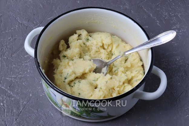 Картофельно-сырную начинку тщательно перемешать и дать ей немного остыть.