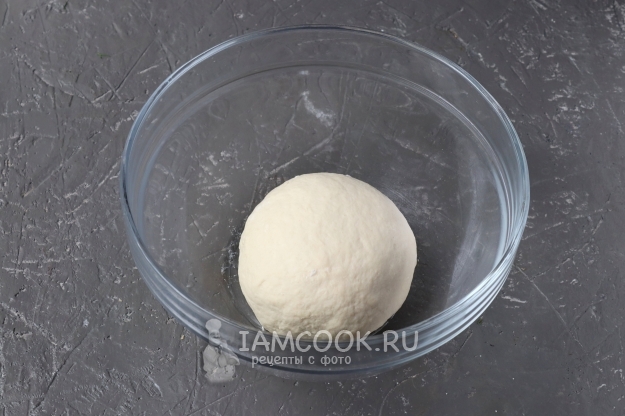 Замесить плотное, совершенно не липнущее к рукам тесто. Накрыть его полотенцем или замотать в пищевую плёнку, оставить тесто при комнатной температуре на 30 минут.