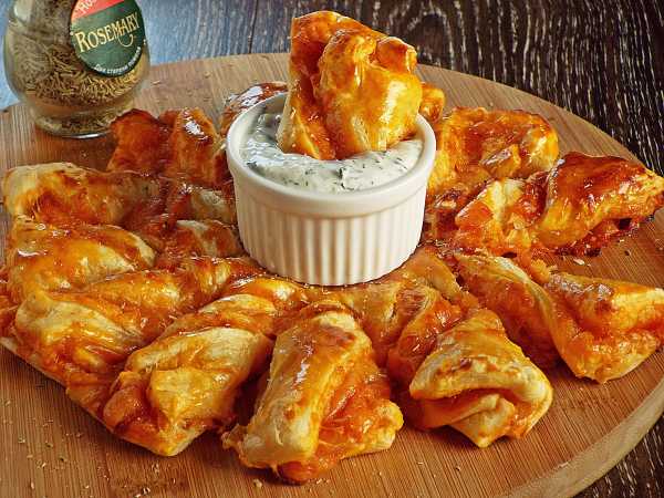Для закусочных пицц я очень люблю основу, покрытую не томатным соусом, а оливковым маслом с травами. Если использовать тонкое, а не толстое тесто для пиццы, то её можно сделать таким образом более хрустящей. Ну, а маслины обеспечивают насыщенный вкус, хорошо подходящий к красному. Каперсы желательны, но не обязательны.