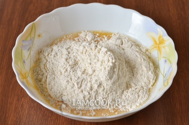 Добавьте в два этапа заранее просеянную пшеничную муку.