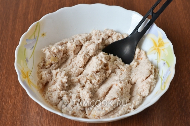 Приготовьте начинку. Отварную курицу перекрутите на мясорубке. Рекомендуется использовать куриную грудку и мякоть с окорочков.