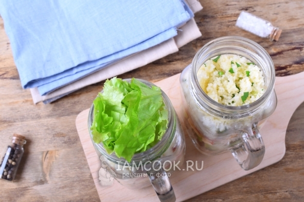 Настала очередь кускуса. И самый верхний слой - листовой салат.