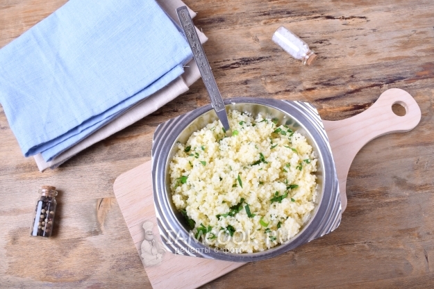 К остывшей крупе добавим мелко нарезанную зелень и еще раз перемешаем.