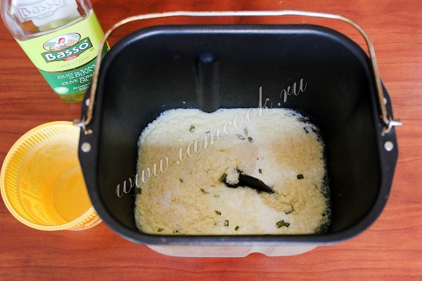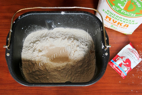 Затем добавьте муку с солью, сахаром и дрожжами.