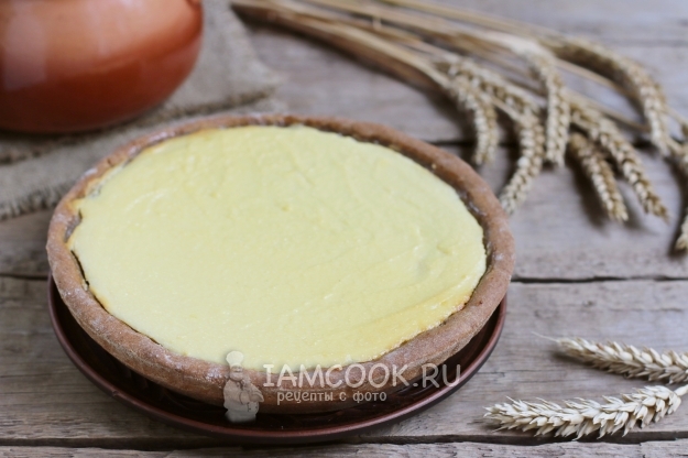 Затем достаем из холодильника тесто и, разминая его пальцами, распределяем по форме, предварительно смазанной небольшим количеством растительного масла. И вот тут мое маленькое дополнение - хоть раньше не выпекали основу отдельно, а ставили форму в духовку, а точнее в русскую печь, сразу вместе с творожной начинкой, я все же советую поставить форму с основой из теста без начинки на 10 минут в духовку, чтобы основа схватилась. Все-таки, когда мы выливаем творожную начинку, она дает влагу и тесто, особенно из ржаной муки, может остаться немного вязким в центре ватрушки. А если мы его предварительно запечем, то основа будет полностью пропеченной. Я пекла и так, и так, поэтому предлагаю и вам такой вариант. Здесь в рецепте я вылила творожную начинку сразу в сырую основу.