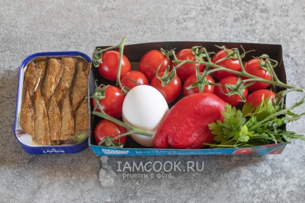 Салат со шпротами и помидорами оказался сегодня на моём столе единственно потому, что у меня не было огурцов. В смысле, маринованных. Захотелось чего-то моего любимого салата со шпротами и горошком - глядь, а огурцов-то для него и нету!!! Без огурцов тот салат - невкусно, а я уже настроилась на шпроты! Ну, по амбарам помела, по сусекам поскребла - наскребла помидоры и небольшой огрызок паприки. Подумала-подумала - слушайте, а и неплохо ведь должно получиться! Вот так и родился рецепт салата со шпротами и помидорами (ну, вдруг это заинтересует потомков! Есть же истории про всякие там салаты Цезарь...).