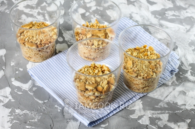 В стаканы или чашки всыпьте на треть песочную крошку.