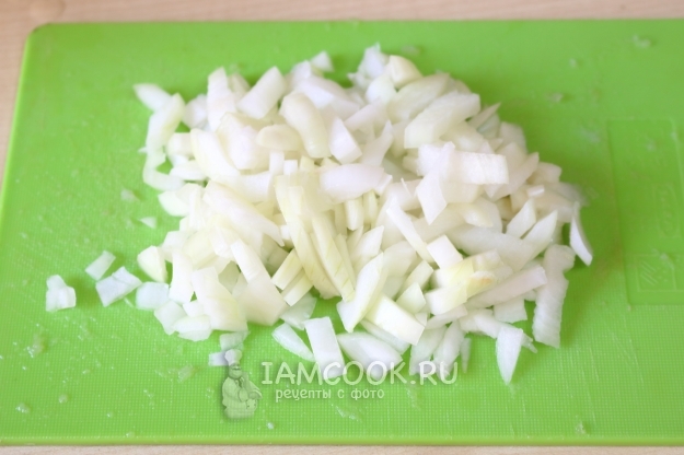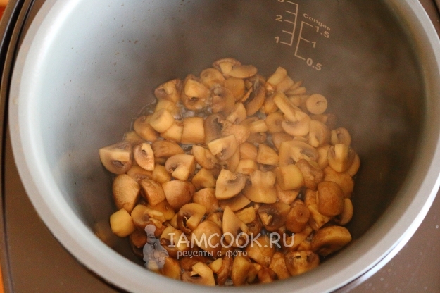 Выкладываем в разогретую в режиме «Выпечка» мультиварку и тушим в собственном соку до выпаривания жидкости (20 минут).
