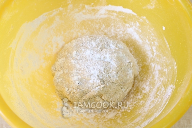 Затем всыпаем оставшуюся пшеничную муку (от 50 до 100 г) и переходим на ручной замес. Месим минимум 7-10 минут. Тесто должно быть мягким, но не липнущим к рукам. Формируем шар, присыпаем мукой и оставляем подходить под полотенцем в теплом месте на час.